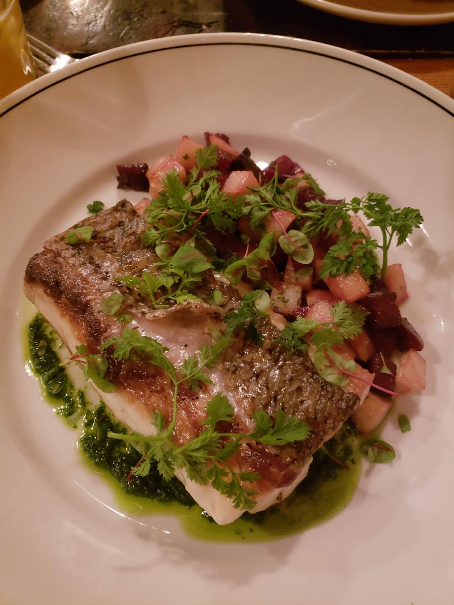 Visited here for a rheumatology conference. So we had the back room in the back patio available to us. Beautiful location with ample space however, the table seating was a little bit tight. The service staff was incredibly friendly and was always refilling drinks and bringing around more option for food.For dinner, we had the chicken and the rockfish. Both were cooked perfectly, but the portions were rather small, so could have used a little bit more to eat. The flourless chocolate cake was good, but I’ve definitely had a more decadent flourless chocolate cake elsewhere.